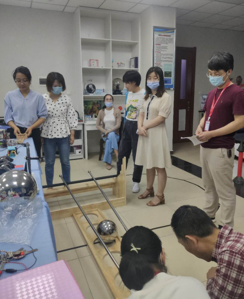 会上,张主任对中小学拓展性实验课程开发背景、课程方案设计、开发目标与过程等三个方面做了详细介绍,诚挚邀请各位一线教师从实际教学需求及学生认知水平出发,对项目组初步完成的课程大纲、讲义等提出宝贵的意见和建议。随后,从小学参与式教学特点出发,张主任带领各位教师来到科教仪器研发云顶娱乐 展厅,请大家考察体验云顶娱乐 自行研发的系列教学仪器,其中包括光声探究、力热奥秘、电磁体验、神奇化学、生物万象、地理探秘、趣味数学及机器人魅力等八大模块,并在现场与项目组成员充分交流与讨论。最后,与会人员又聚在一起,针对小学科学拓展实验课程编制教材的数量、课程分类、讲授课时、现有课程设计对应学段等具体问题进行了深入讨论,明确了下一阶段的工作重点将是项目组成员与小学一线教师点对点交流,共同承担中小学拓展实验课程的研发任务,优势互补,资源共享,实现互惠共赢,切实担负起师范大学服务基础教育改革发展的时代使命。