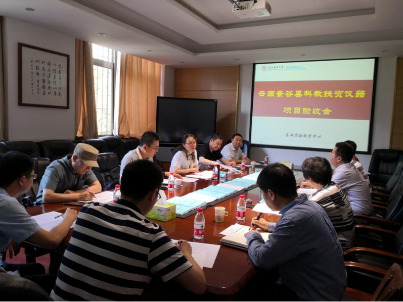 会上,科学技术处处长吴晓军介绍了项目立项情况。专家组成员听取了张尊听教授对项目实施情况的汇报,审阅了有关材料,进行了实地考察,并经过质询和讨论,一致认为该项目研制的仪器设备及开发的课程资源融科学性、知识性、趣味性、创新性于一体,达到了项目要求,彰显了云顶娱乐教师教育优势,是一项特色鲜明的科教扶贫工作,同意通过验收。