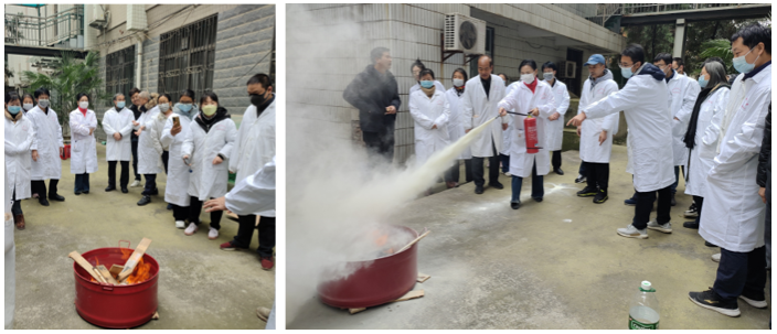 10时整,工作人员为师生们讲解实验室常用灭火器、灭火毯的灭火原理和使用方法,在其演示和指导下进行化学品燃烧和电气燃烧的灭火技能实操训练。