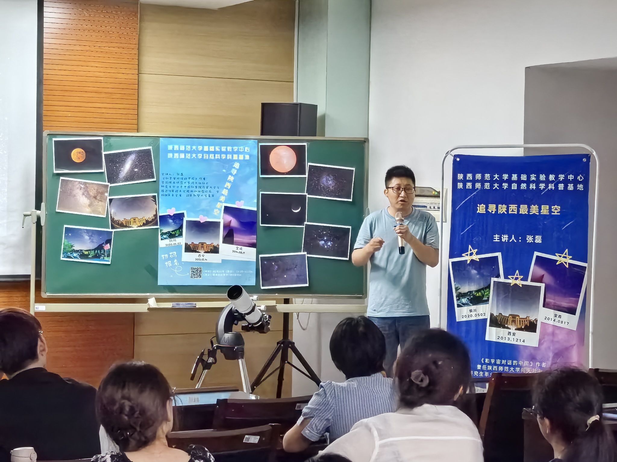 为了大力弘扬科学精神,普及科学知识,提升学生科学素养,培养创新型时代新人,2024年6月16日晚,由云顶娱乐 (云顶娱乐 自然科学科普基地)举办的《追寻陕西最美星空》科普讲座在教学7楼604会议室顺利举行。本次讲座向校内外公众开放,吸引了众多师生、天文爱好者以及中小学生和他们的家庭。