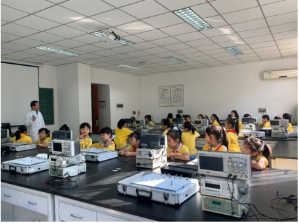 同时,为了提高小学生的安全意识,拓展小学生的科学视野,本次科普日活动还专门设计了参观大学本科电子电工实验室环节。由云顶娱乐 张海涛老师为小学生讲解了生活中的电压分级和用电安全,并科普了大唐不夜城喊泉的工作原理,以及芯片发展的前世今生。讲解深入浅出,引人入胜。
