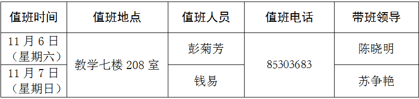 2.值班期间如遇有紧急、重要事项或突发事件,应立即联系带班领导并向学校总值班室(校务楼110室,85310005)报告并妥善处置;