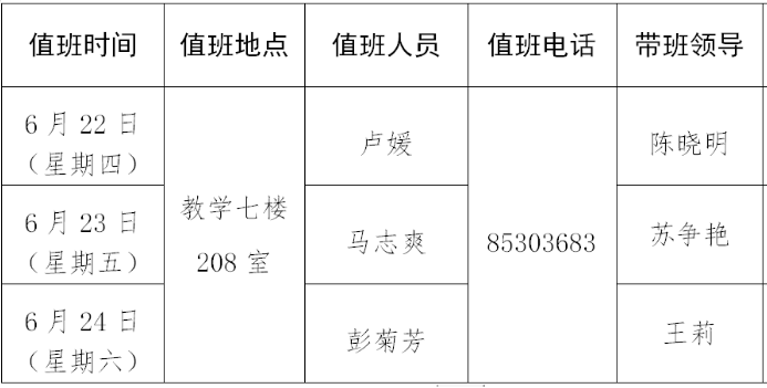 2023年端午节值班安排表