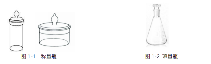 在碘量法滴定分析中常用一种带磨口塞、水封槽的特殊锥形瓶,称碘量瓶(图1-2)。使用碘量瓶可减小碘的挥发而引起的测定误差。